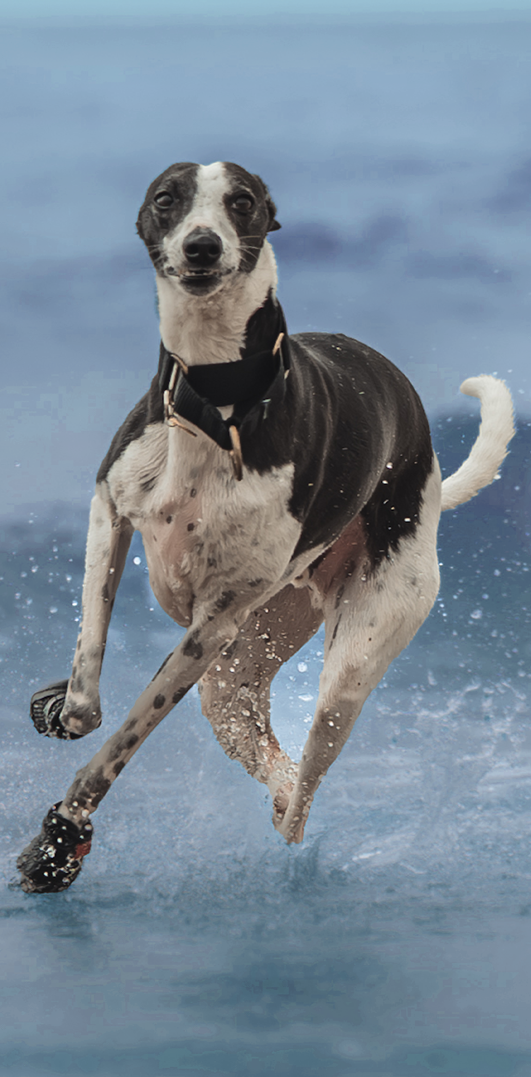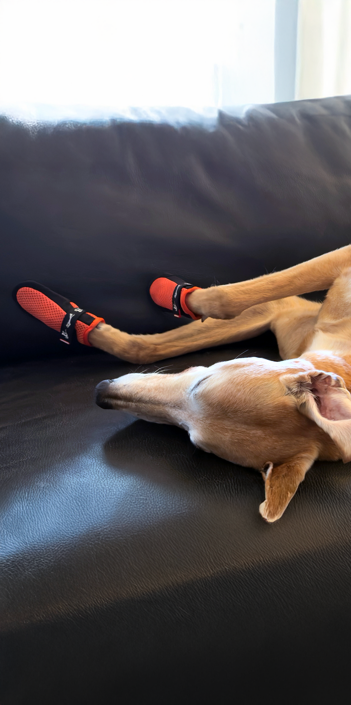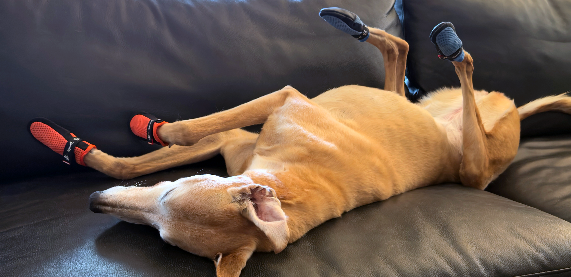 Slippery floors? Sore feet or just plain cold? The new range of Hunnyboot Slippers are greyhound shaped and perfect for the indoor dog.