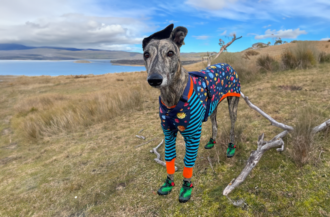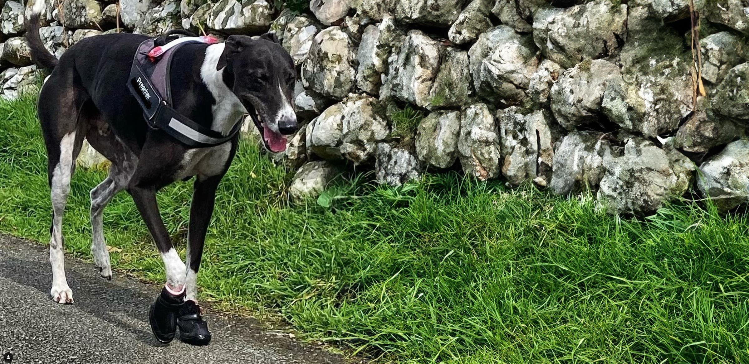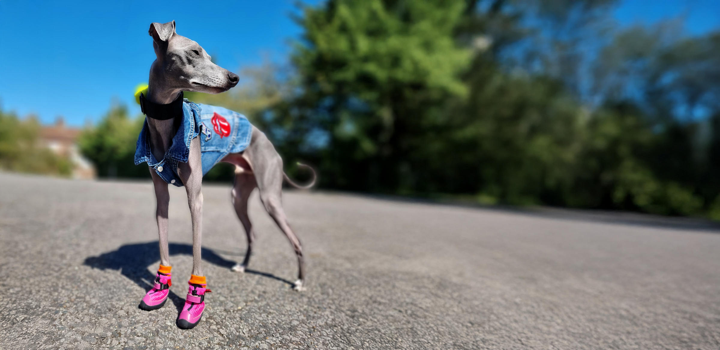 Slippery floors? Sore feet or just plain cold? The new range of Hunnyboot Slippers are greyhound shaped and perfect for the indoor dog.
