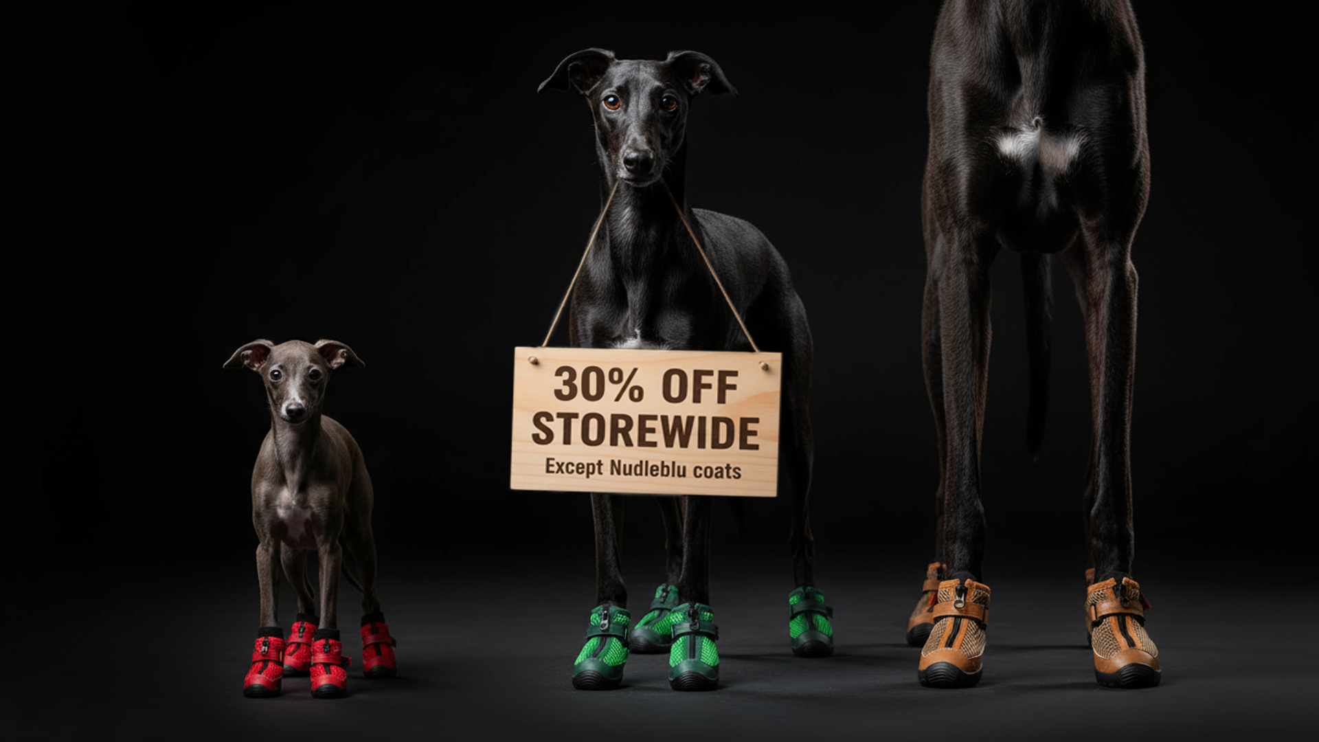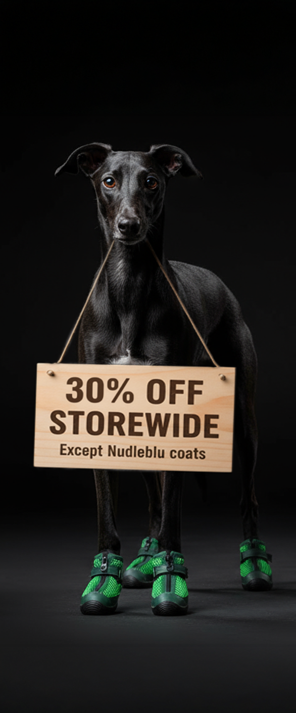 Slippery floors? Sore feet or just plain cold? The new range of Hunnyboot Slippers are greyhound shaped and perfect for the indoor dog.